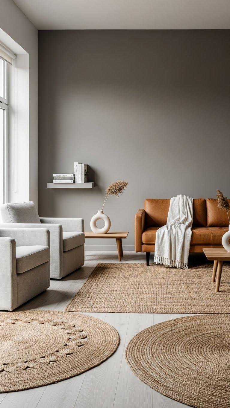 A cool gray backdrop gives your room a calm, contemporary frame, while tan accents add a warm, tactile counterpoint that keeps the space inviting.