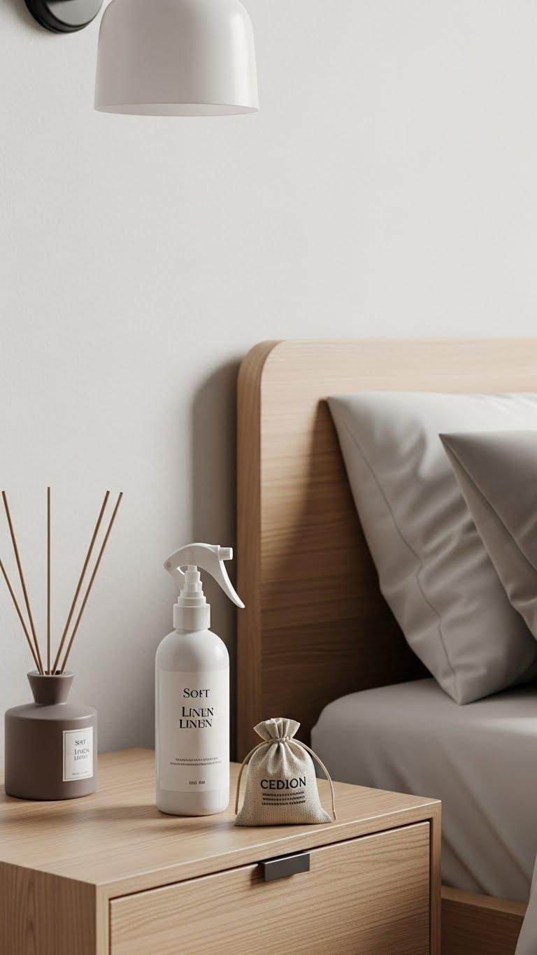 While you keep lines clean and surfaces uncluttered, scent can quietly shape the room’s calm: choose subtle, natural fragrances like linen spray, cedar sachets, or a single reed diffuser in a muted vessel to add depth without stealing the minimal aesthetic.
