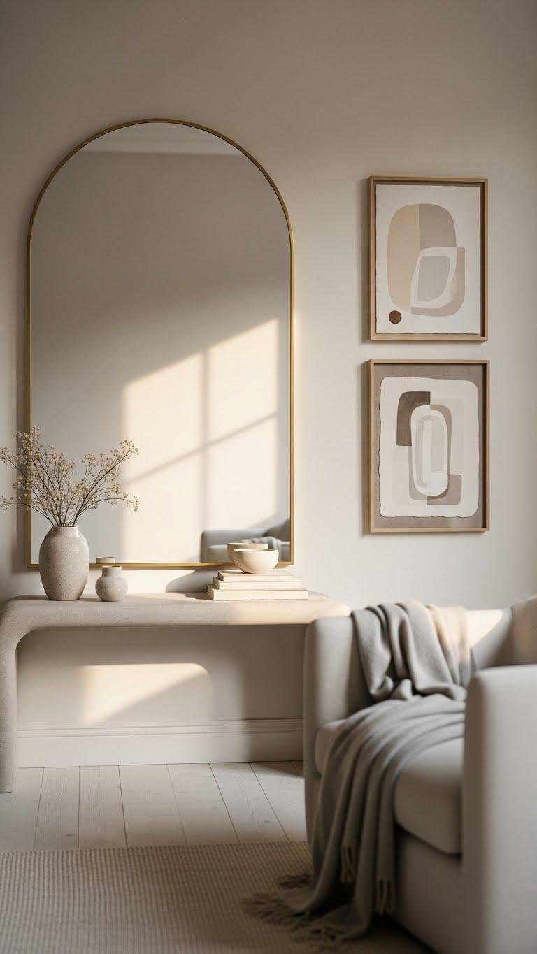 An arched mirror instantly softens a room’s geometry and reflects light in a way that feels both architectural and inviting, so try pairing one above a console or mantel to create a calm focal point.