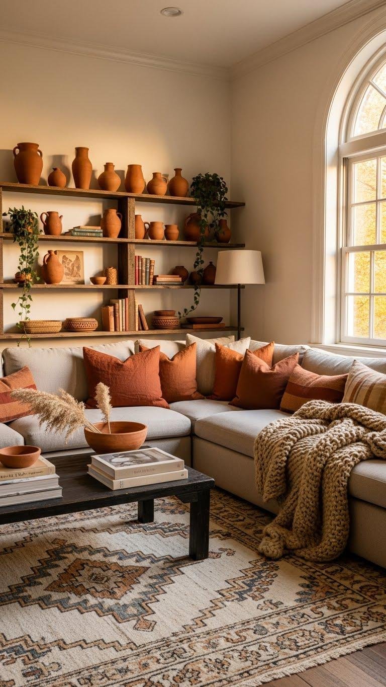 Because burnt sienna carries both warmth and subtle depth, adding small, intentional accents of it will enliven your neutral scheme without stealing the calm. Use burnt sienna textiles—throws, pillows, a rug—to anchor seating, and display terra cotta ceramics on shelves or a console for sculptural contrast.