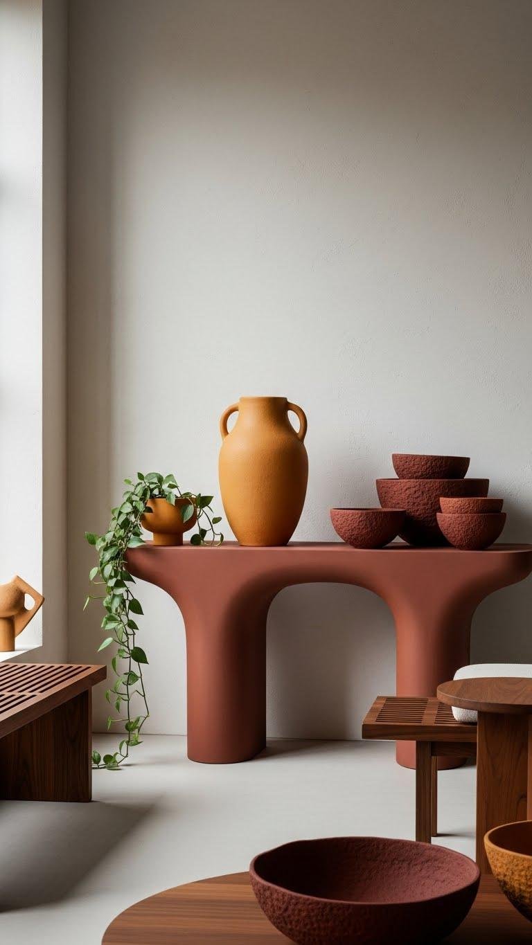If ochre and oxblood lightly warm your palette, deep terracotta will anchor it—bringing an earthy, sculptural presence that reads both modern and timeless.