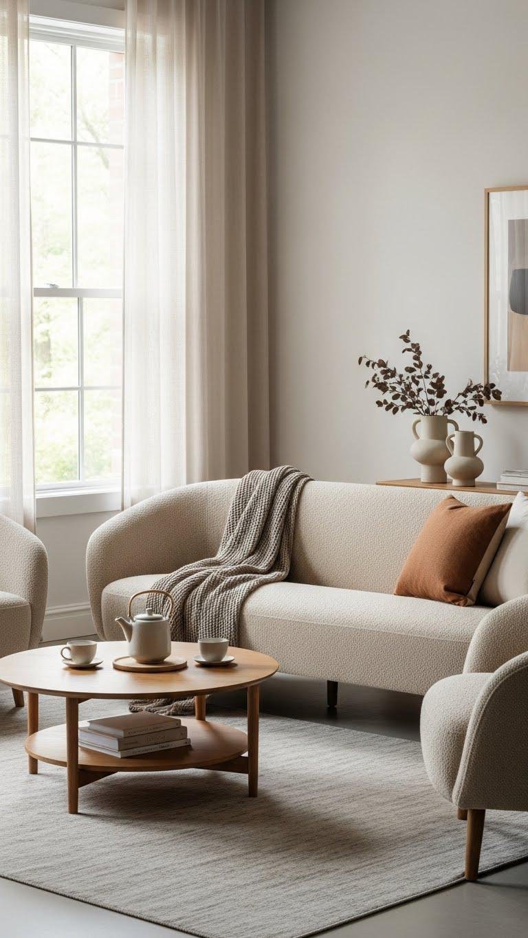 Curved Sofa Anchoring a Calm Conversation Area