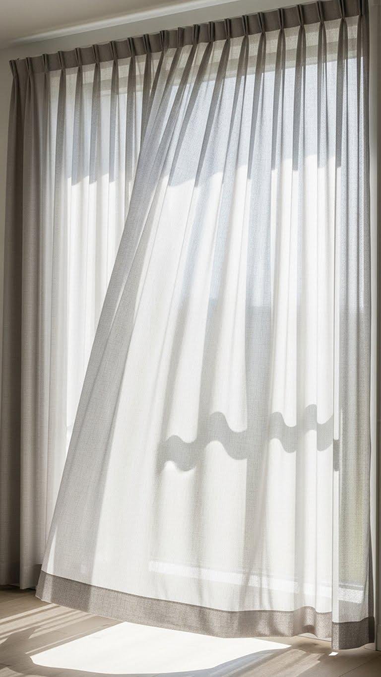 You’ll choose neutral sheers and light filtering panels to soften glare while preserving views. Hang them high and wide to widen sightlines, let fabric float near the floor, and pair with minimal hardware. You’ll create a breezy, uncluttered backdrop that feels open and free.