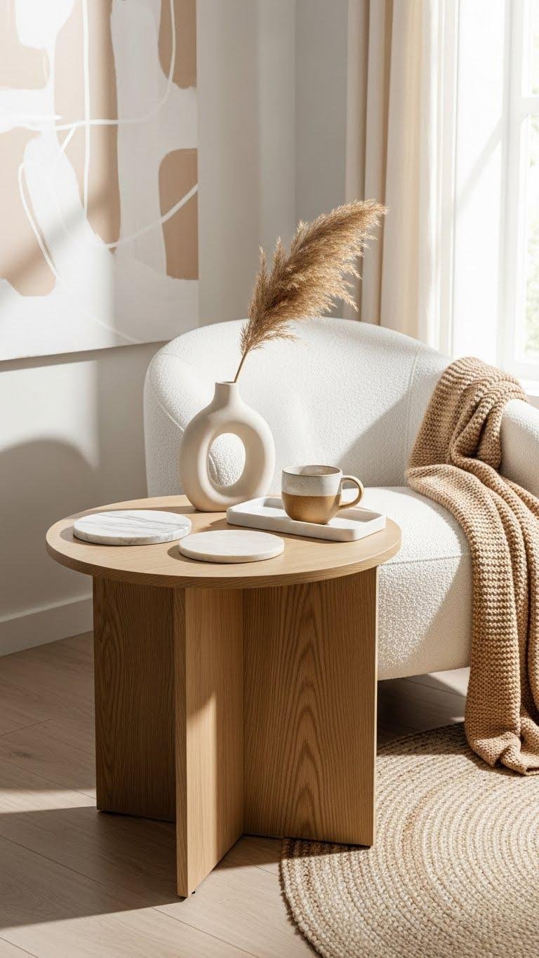 Keep shapes organic, finishes subtle, and negative space generous so your room breathes and feels effortlessly free.