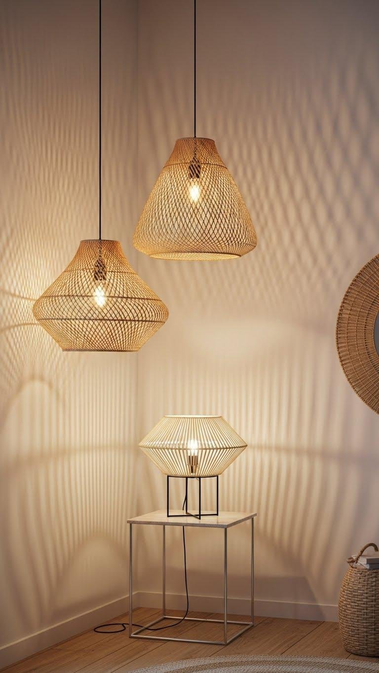 Bring warmth and texture into your neutral spring scheme with rattan light fixtures or lamps that cast soft, sculptural shadows and feel effortlessly modern. Choose rattan pendants over harsh fixtures, or pair woven lamp shades with minimalist bases.