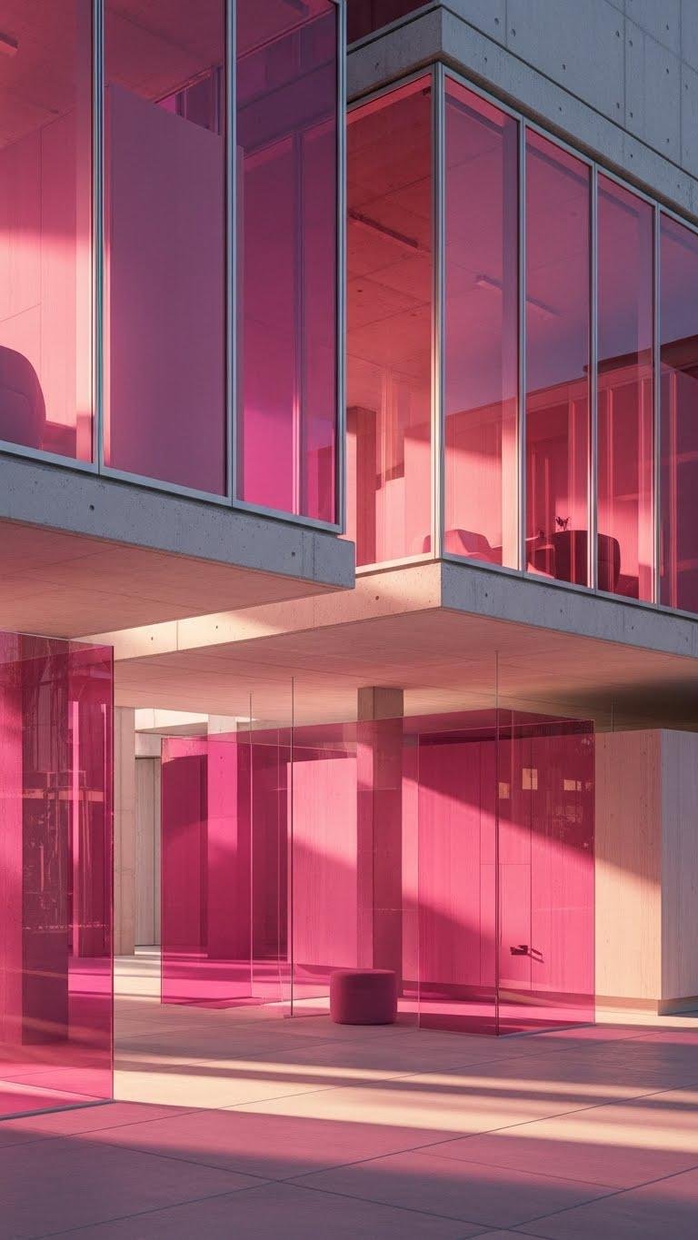 Think of pink-tinted glass as a subtle architectural gesture that warms light and sharpens form; you’ll use it to cast soft rose washes across concrete, steel, and pale woods without turning a space saccharine.