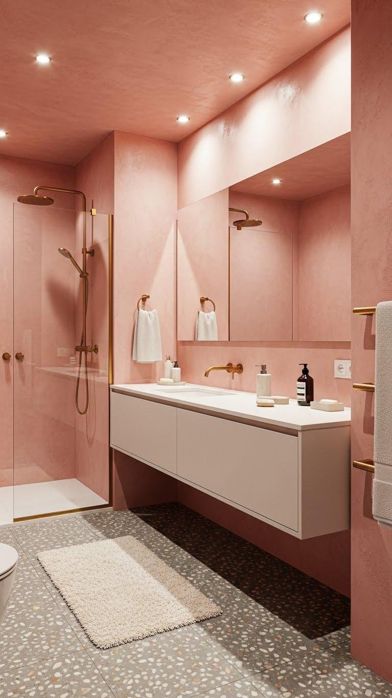 Plaster Pink Bathroom Finishes for Soft Luxury