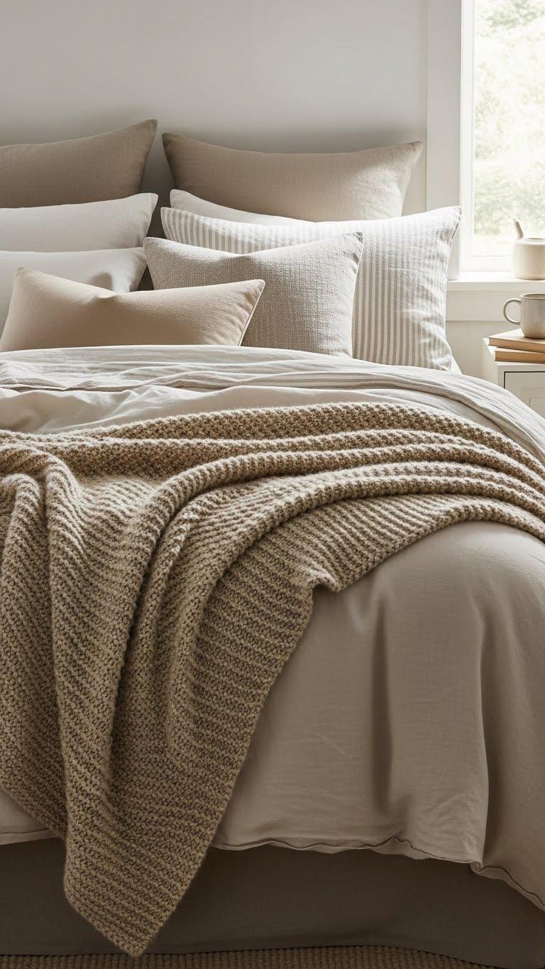 Layer soft layers of linen, wool, and cotton in warm neutrals to turn your bed into an inviting retreat you want to sink into every night. You’ll mix linen textures and cozy knit throws, pick neutral palettes that breathe, and tuck corners for a relaxed, polished look.