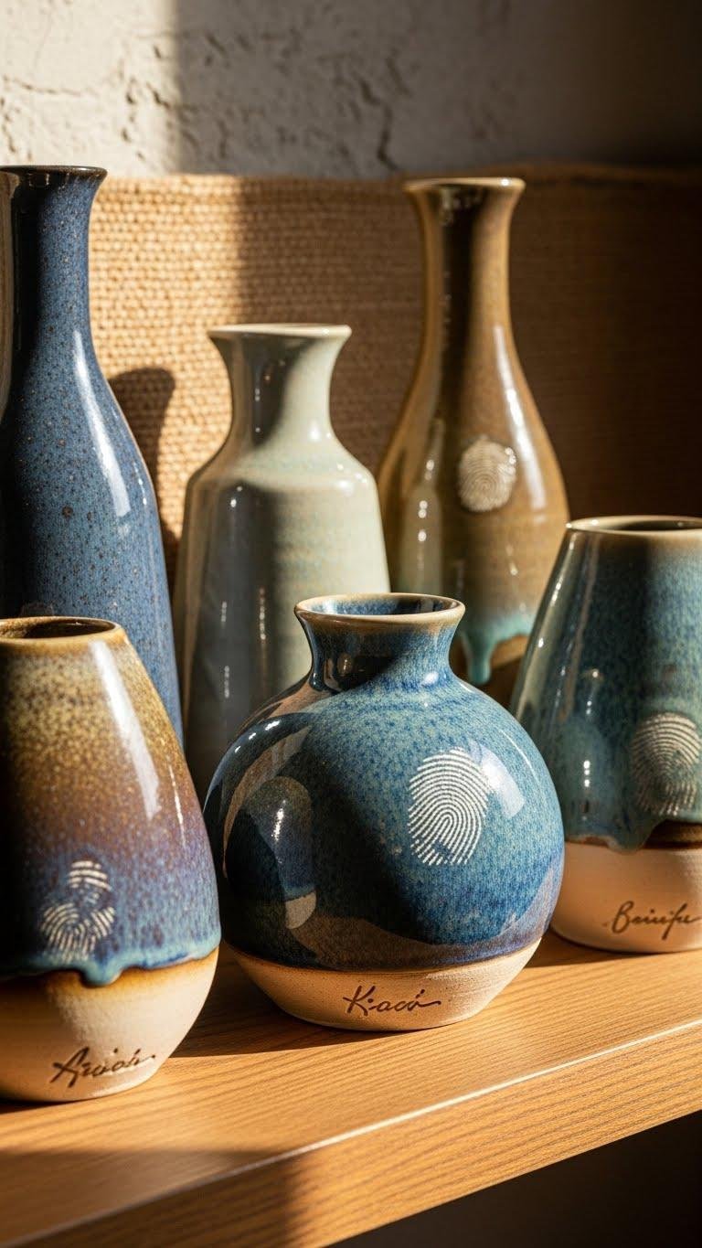 Curate a small collection of handcrafted ceramic vases to bring texture and personality to your space: their imperfect glazes, varied silhouettes, and subtle fingerprints tell stories that mass-made pieces can’t.