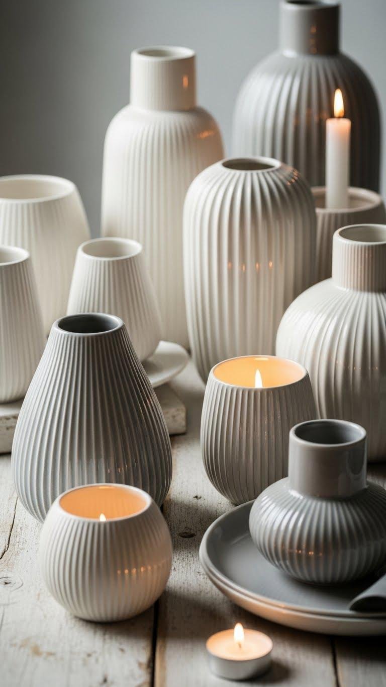 Often you’ll reach for pleated or ribbed ceramic accessories when you want texture that reads as both modern and timeless; their subtle grooves catch light and shadow to give surfaces a tactile, sculptural quality.