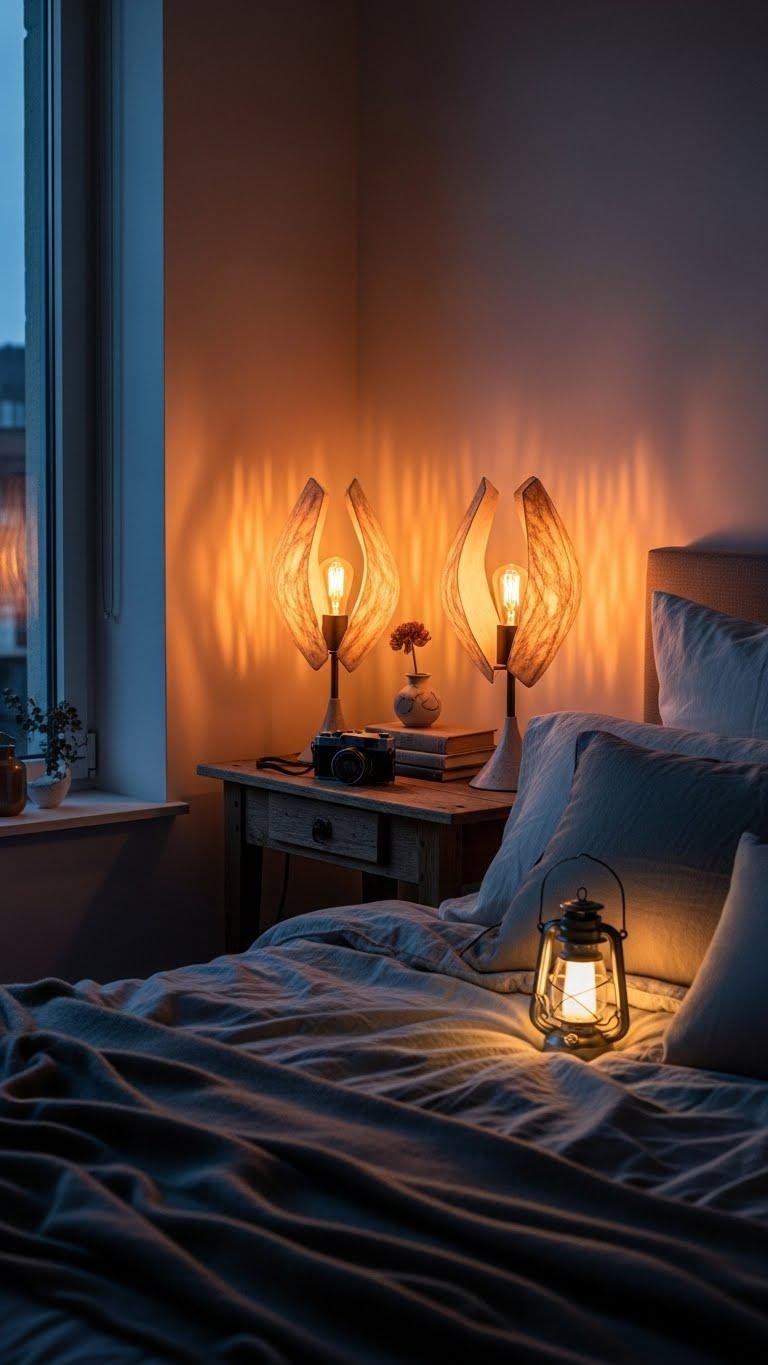 You’ll create calm with warm bulbs, dimmers, and thoughtful lamp rituals—hands-on moments that signal rest. Choose sculptural shades and portable lamps to mix function, romance, and the freedom to shift mood on a whim.