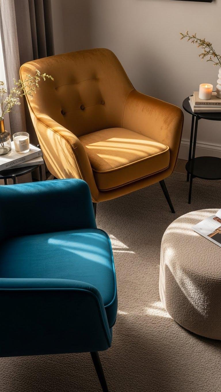 Velvet or Mohair Accent Chairs in Cozy Corners