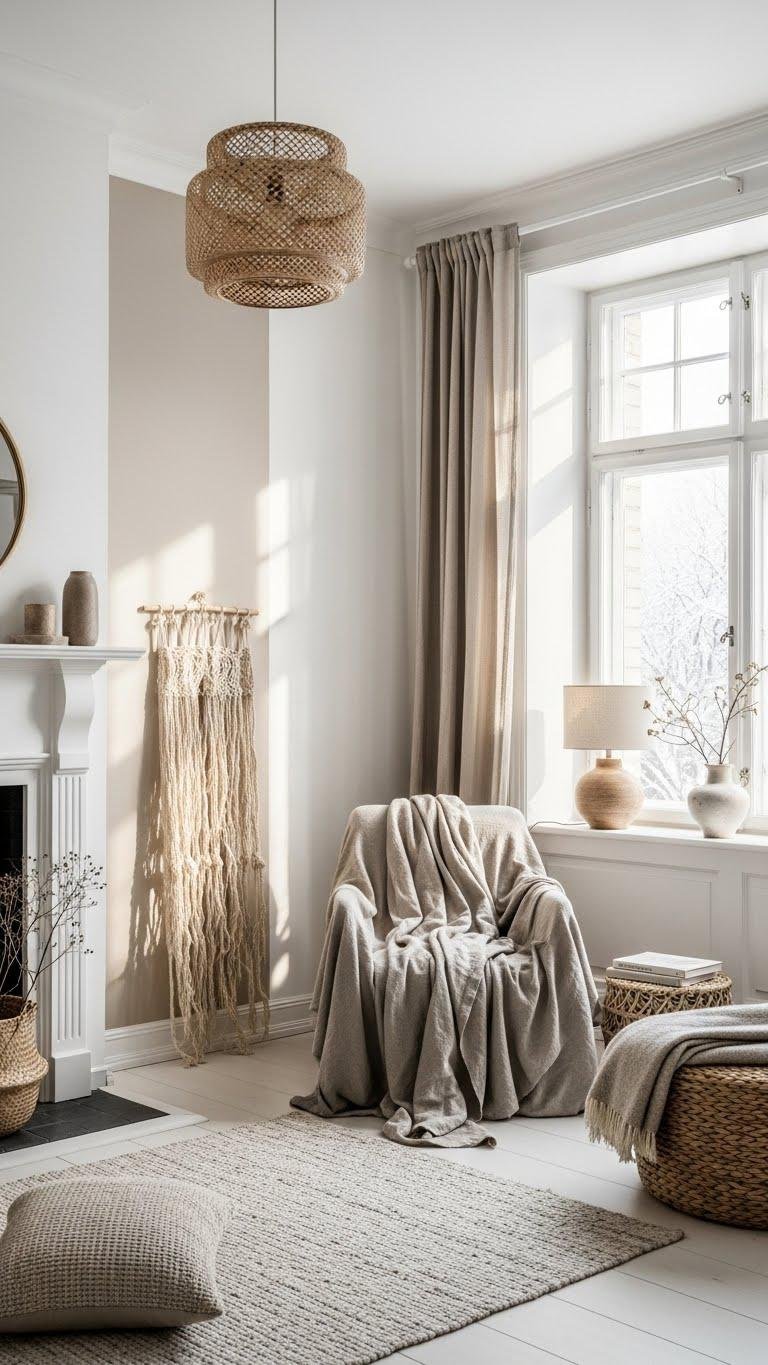 You’ll warm a pale, airy interior without clutter by leaning on soft whites, pale oak, and tactile layers that catch low winter light. Think rounded furniture, linen lampshades, wool throws, and a few sculptural ceramics — all chosen for calm and function. This list brings 25 focused ideas to refine your space, from subtle color shifts to storage solutions, so your home feels quiet, lived-in, and quietly prepared for the season.