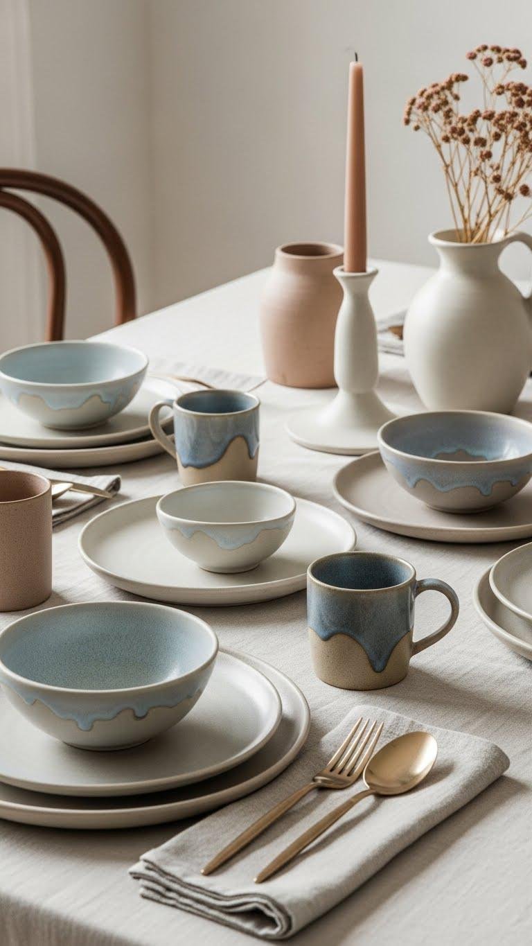 Mix plates, bowls and mugs in pale neutrals to create calm tablescapes. You’ll curate a minimalist, cozy look that celebrates craft and personal freedom without clutter.