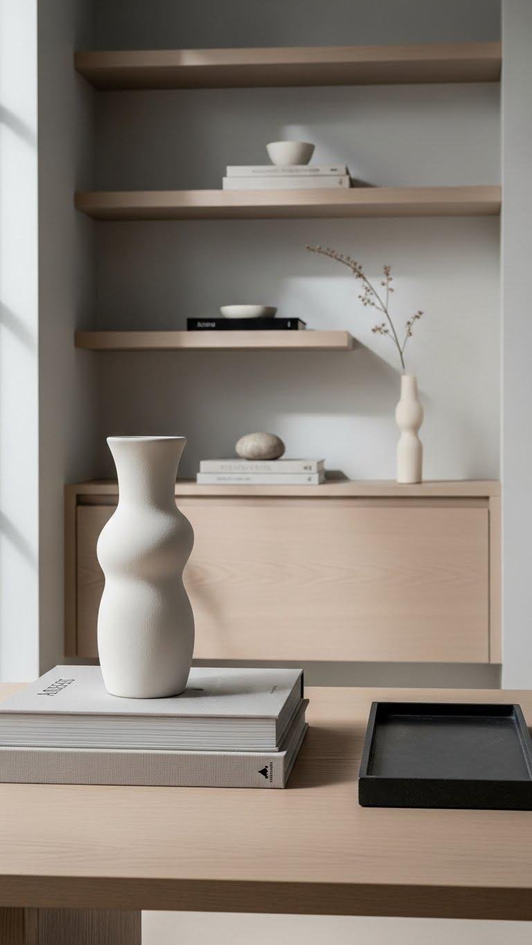 Routinely clear tabletops and shelves down to a few purposeful pieces so your small space reads calm and intentional. You’ll favor minimal displays—one sculptural vase, a couple of books, a single tray—letting negative space breathe.