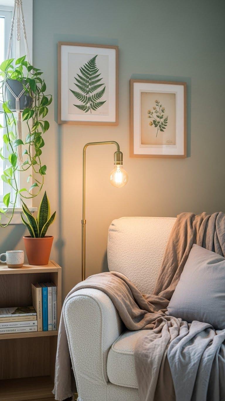 From the calm of a sky-blue bedroom, you can bring that same airy serenity into a cozy corner by painting a reading nook in soft sage green. You’ll carve a private refuge that thrives in low light, layered with linen textures, a warm reading lamp, and framed botanical prints. Keep furnishings minimal so you can breathe, linger, and feel free.