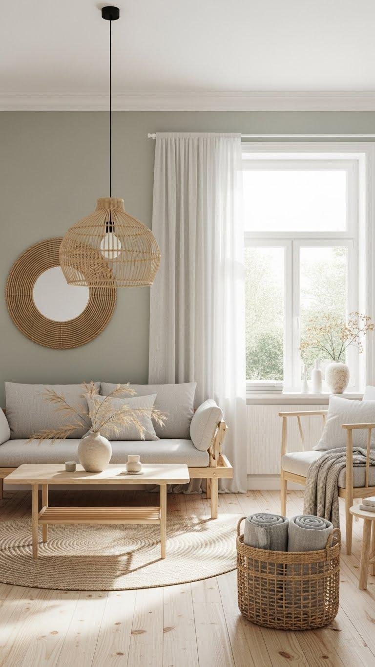 When you pair soft sage with warm wood tones, the room instantly feels grounded and restorative; the combo nods to biophilic design by bringing nature’s calm indoors.