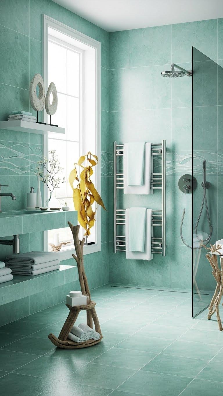 Often a quick palette shift can turn a bathroom into a spa-like retreat, and an aqua scheme does that effortlessly. You’ll embrace sea glass hues, mineral textures on tiles, and kelp inspired accents that flow freely.