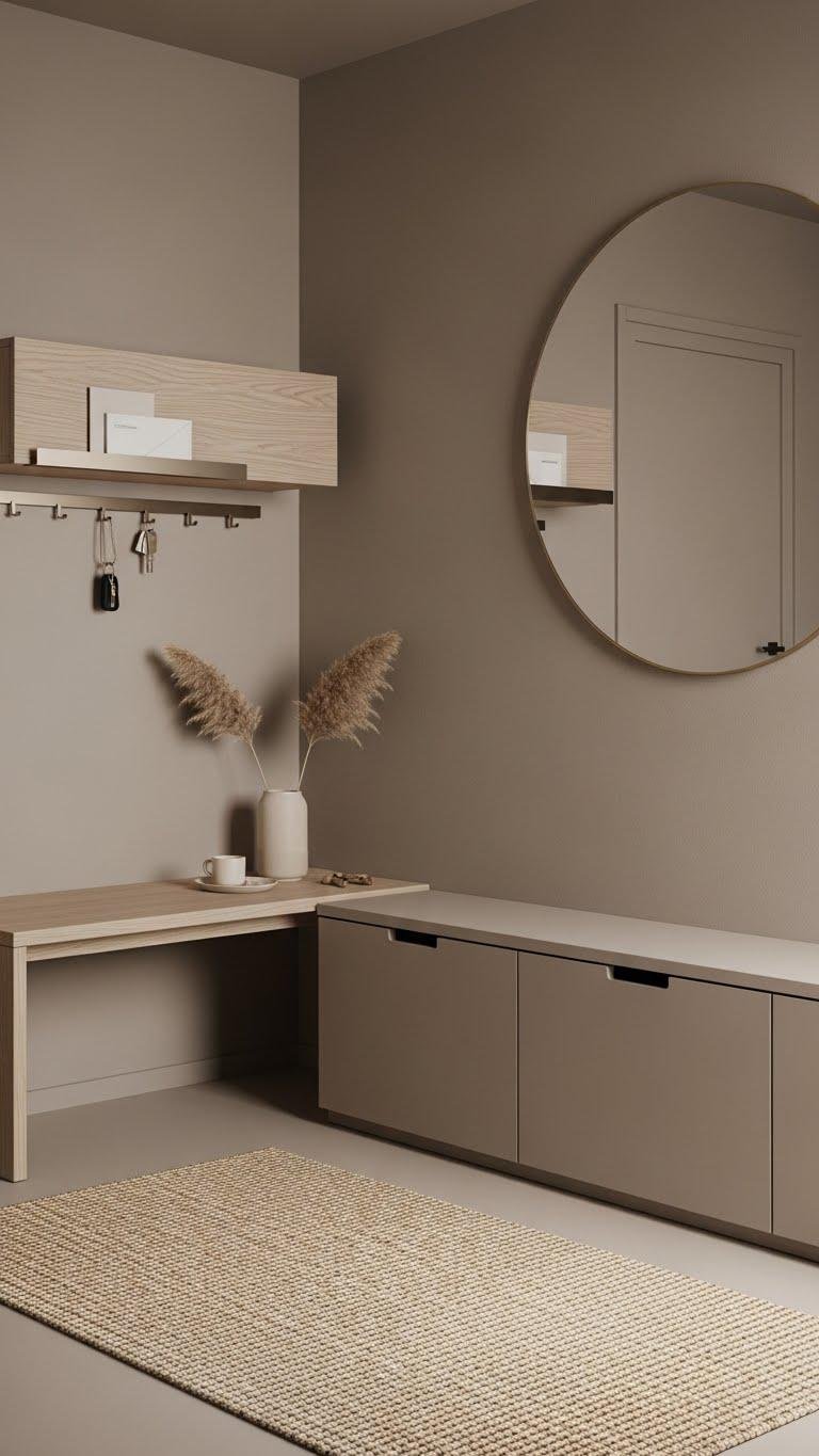 Warm up your entryway with soft taupe walls that greet guests without shouting, and pair them with layered neutrals and natural textures to create a composed, contemporary welcome.