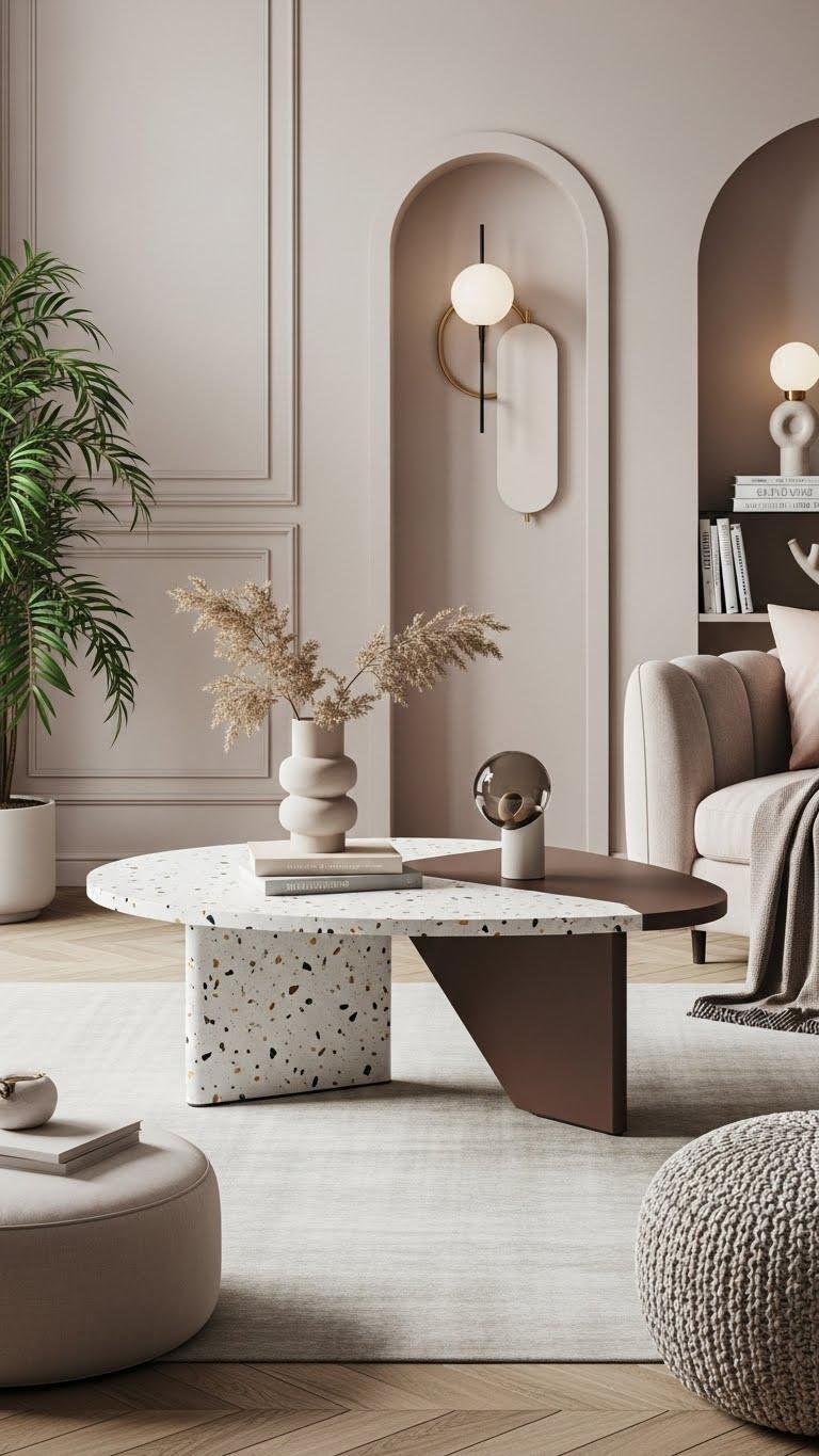 Bring in a sculptural coffee table to anchor the room and make a subtle design statement without overpowering your soft modern palette. Choose pieces with an asymmetric base or a terrazzo top to add tactile interest while keeping lines clean. Nested forms offer flexibility for gatherings and solo moments. You’ll keep the space airy, intentional, and free to evolve with your lifestyle.