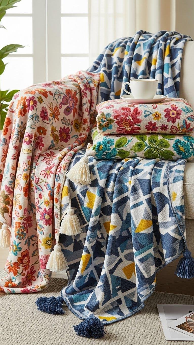 Layer Floral and Geometric Throws for Playful Texture
