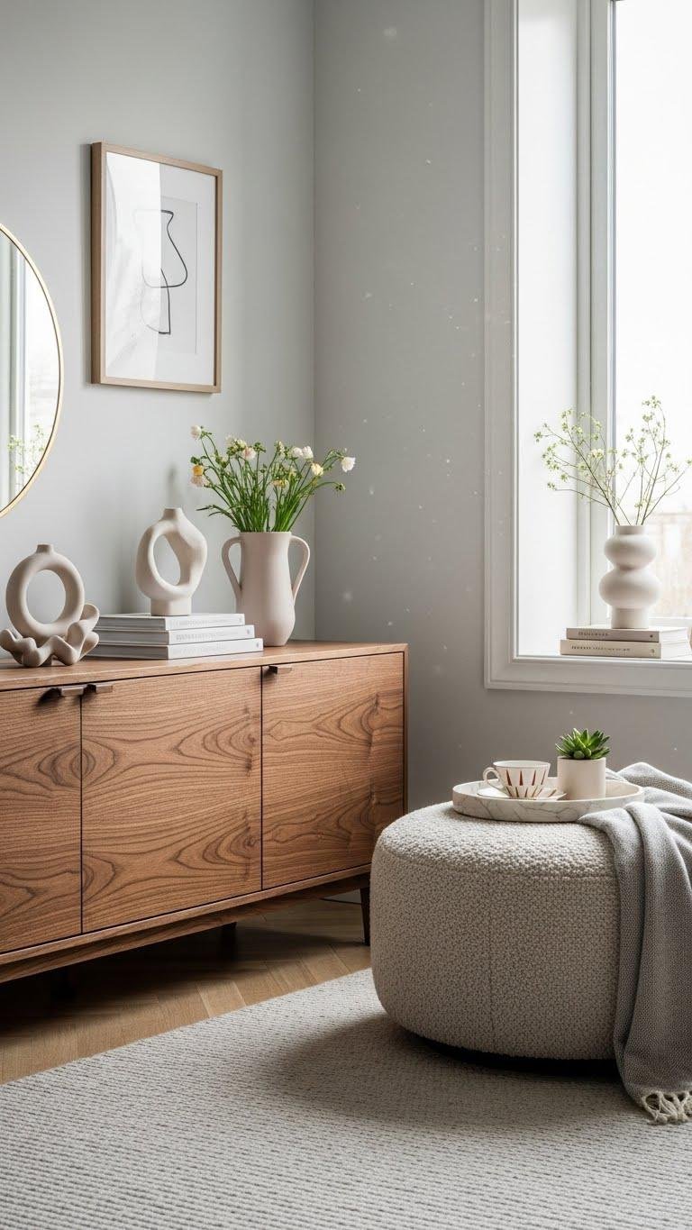 Add Walnut or Bouclé Accent Pieces for Cozy Luxury