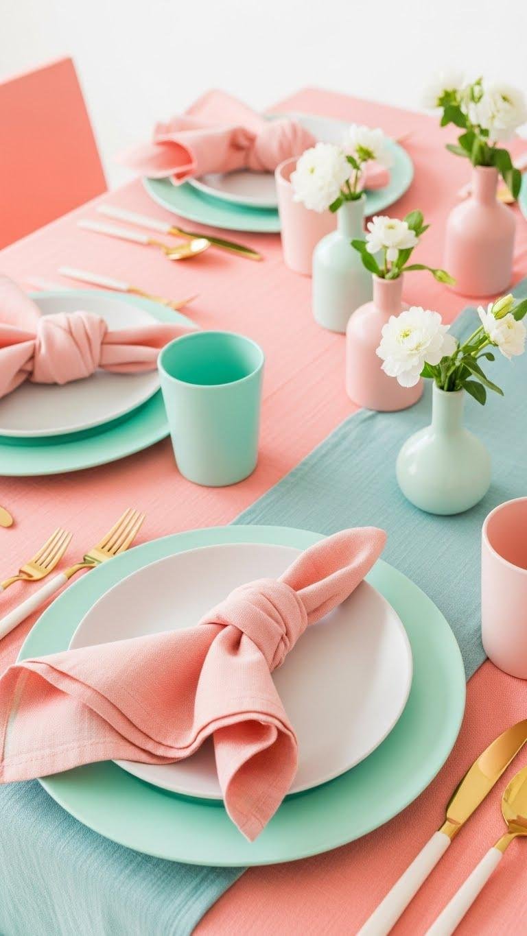 Create a Pastel Table Setting With Soft Corals and Mint