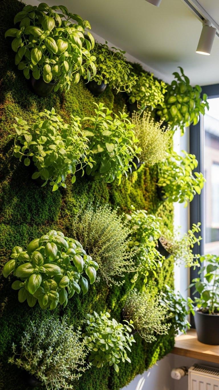 Spruce up a wall with a living tapestry—installing a vertical herb garden or plant wall instantly adds texture, scent, and fresh color to any room.