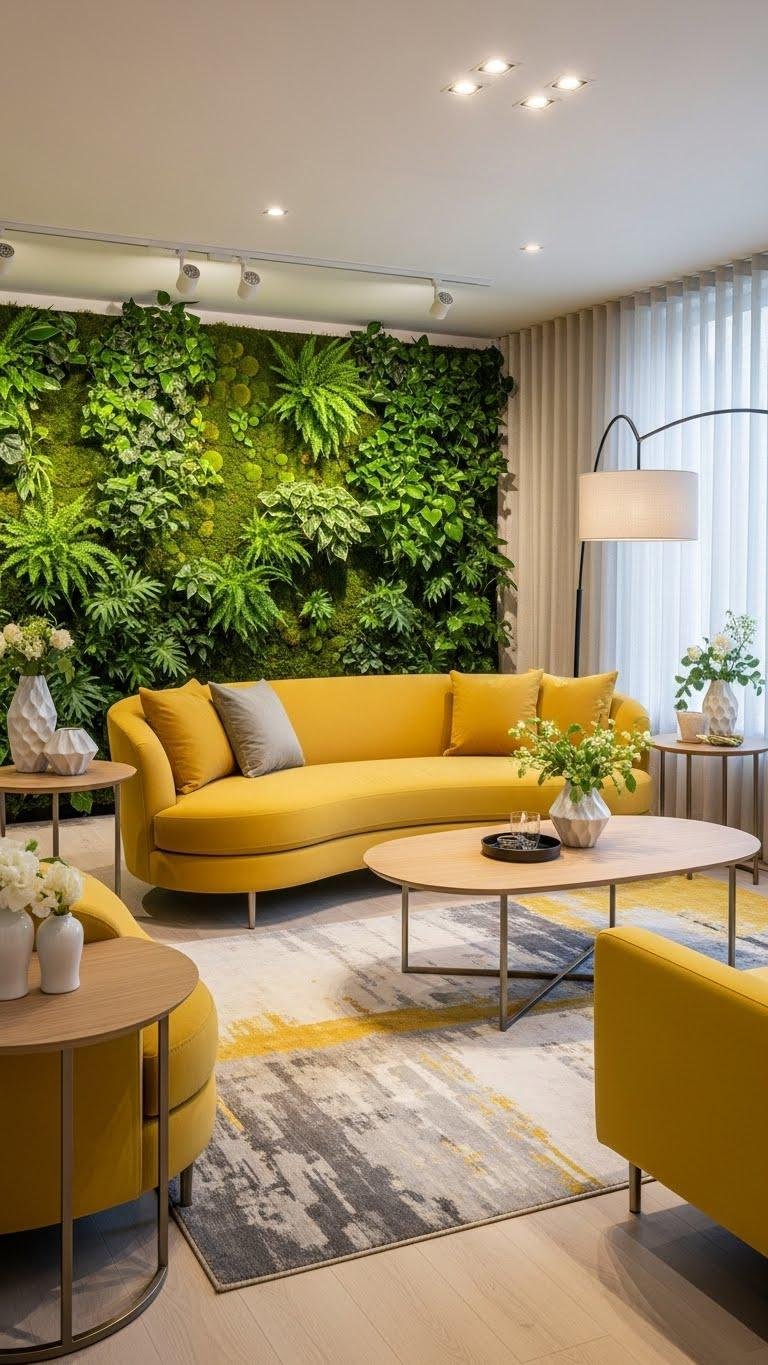 After your living wall brings fresh scent and texture to a room, soften the seating and surfaces to match that organic energy—curved sofas and rounded-edge tables hug the eye and invite you to linger.