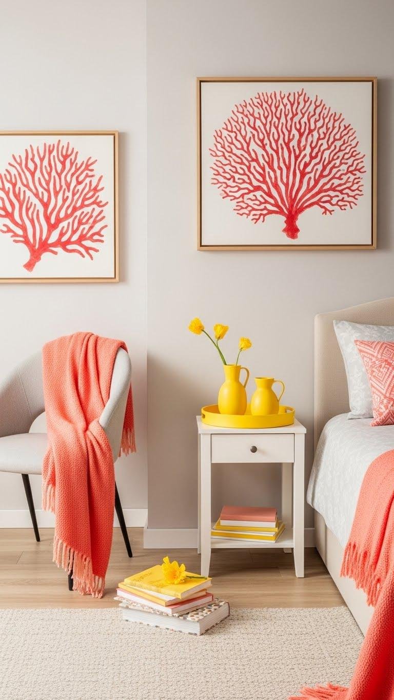 Add Pops of Coral and Yellow