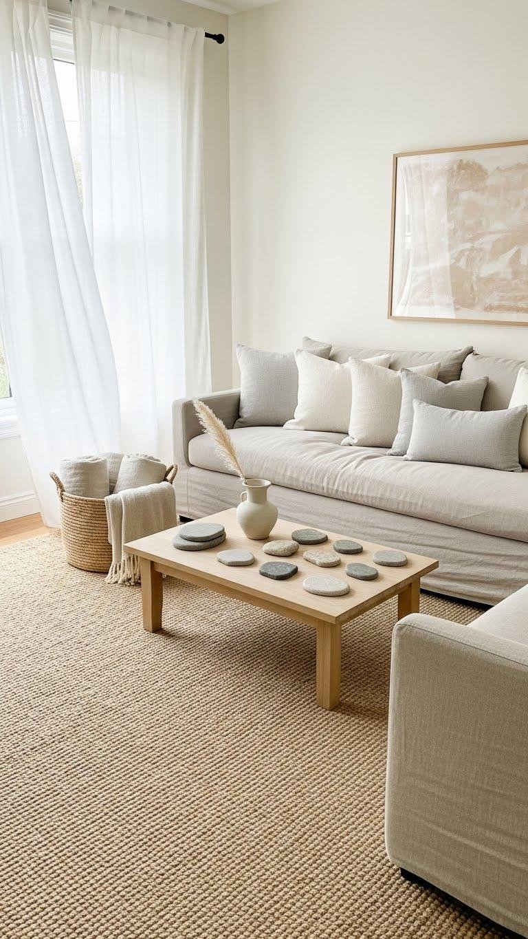 You’ll welcome linen baskets for airy storage and effortless order, keeping surfaces calm without feeling constrained. Pair neutral textiles with stone coasters to ground trays and coffee tables, creating purposeful stillness.