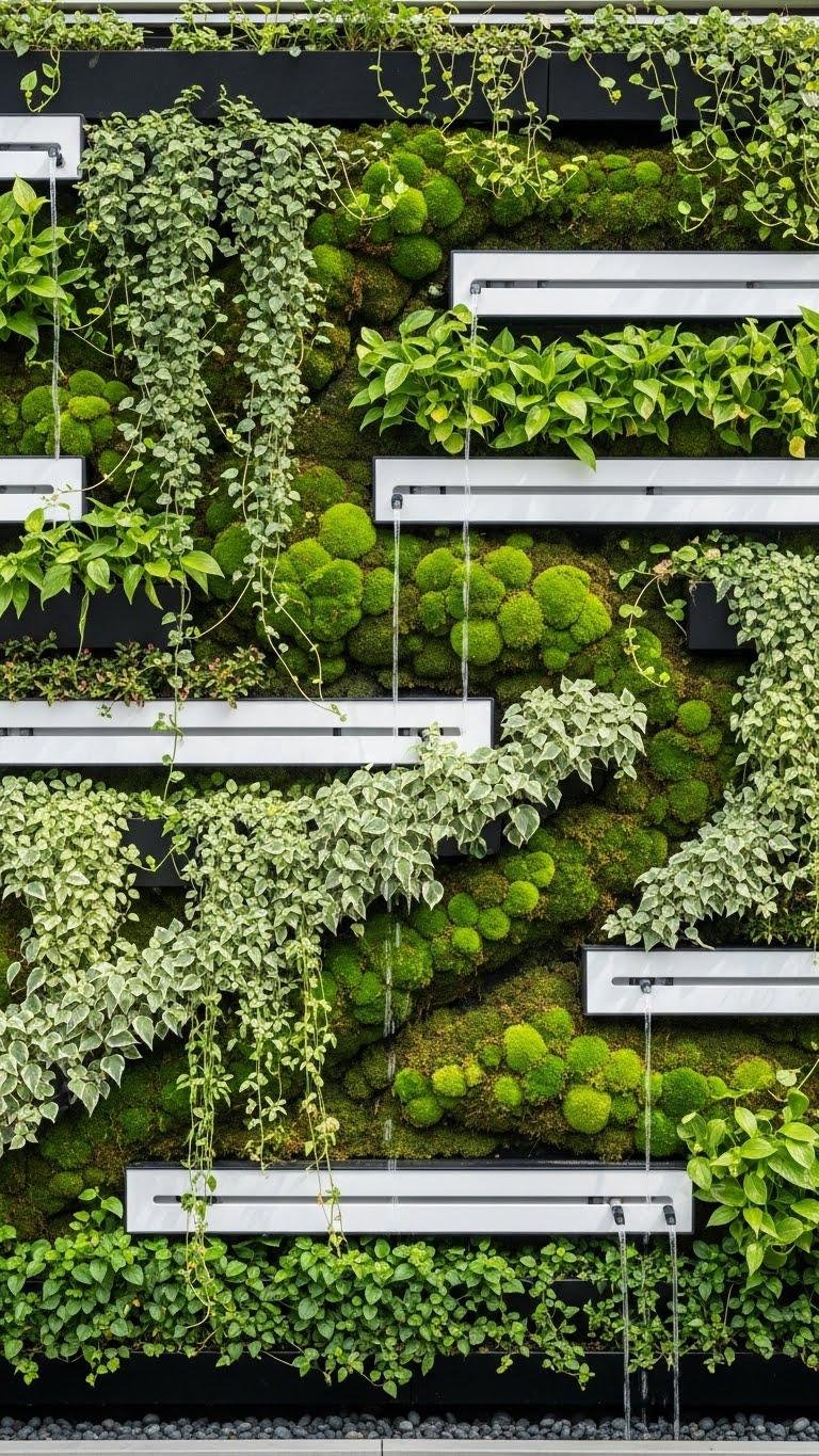 If you want to introduce a lush vertical focal point, a living wall lets you maximize greenery without sacrificing floor space—think layered textures, cascading vines, and pocketed planters that turn a blank wall into a sculptural garden.