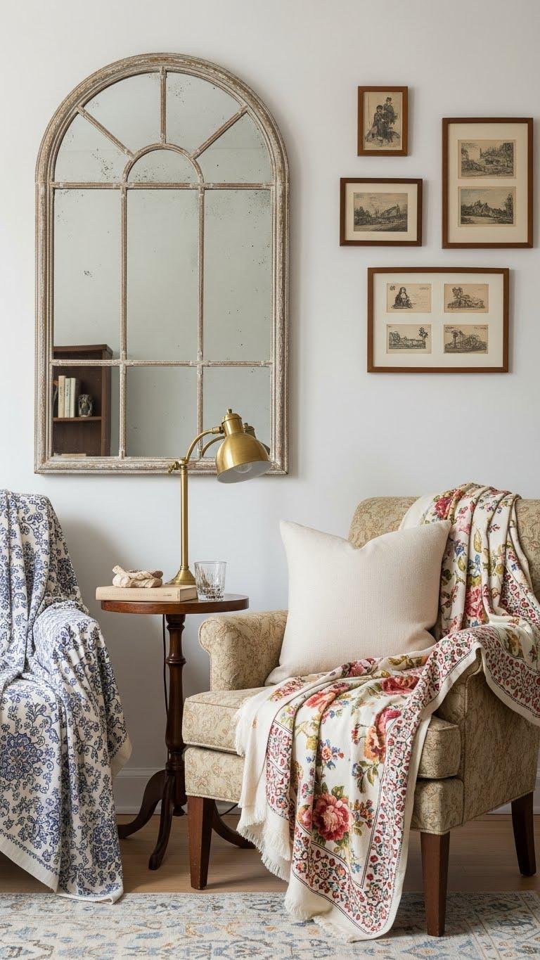 Lean into objects that carry a story—an arched mirror with patina, a faded floral throw, or a brass lamp rescued from a flea market—to quietly anchor your space in familiarity and ease.