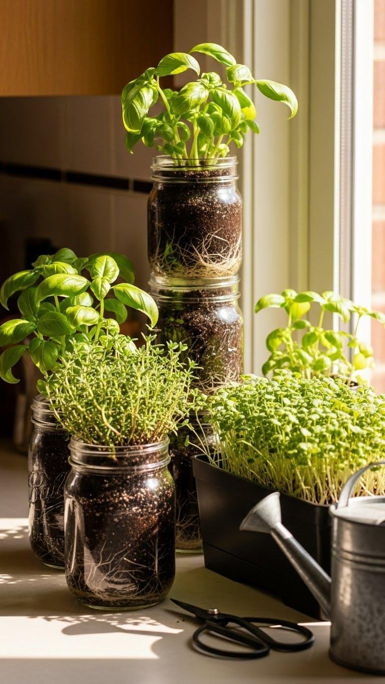 You’ll cultivate basil, thyme, and windowsill microgreens in minimal space, using sunlight, good soil, and simple routine. Try tiered mason jars or a narrow planter to save room while keeping everything accessible and effortlessly serene.