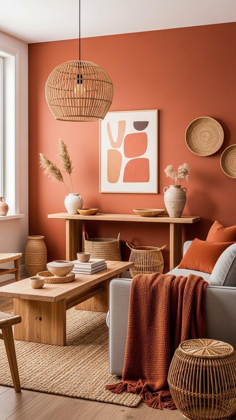 When you add a terracotta or canyon clay accent wall, you warm a room instantly and give it grounded, sophisticated energy.