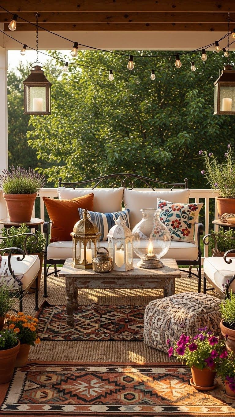 Liven up your porch by rethinking seating and layered decor—swap stiff chairs for a mix of comfy benches, a weatherproof loveseat, and a couple of movable stools so you can rearrange for morning coffee or evening guests. Do a wicker swap for lighter textures, add outdoor rugs, throw cushions, and lanterns. Porch staging should feel effortless, inviting you to linger and roam freely.