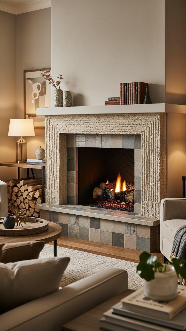 Anchoring the room with a hearth that has a textured surround instantly elevates both warmth and visual interest, so you should treat it as a focal design move rather than an afterthought.