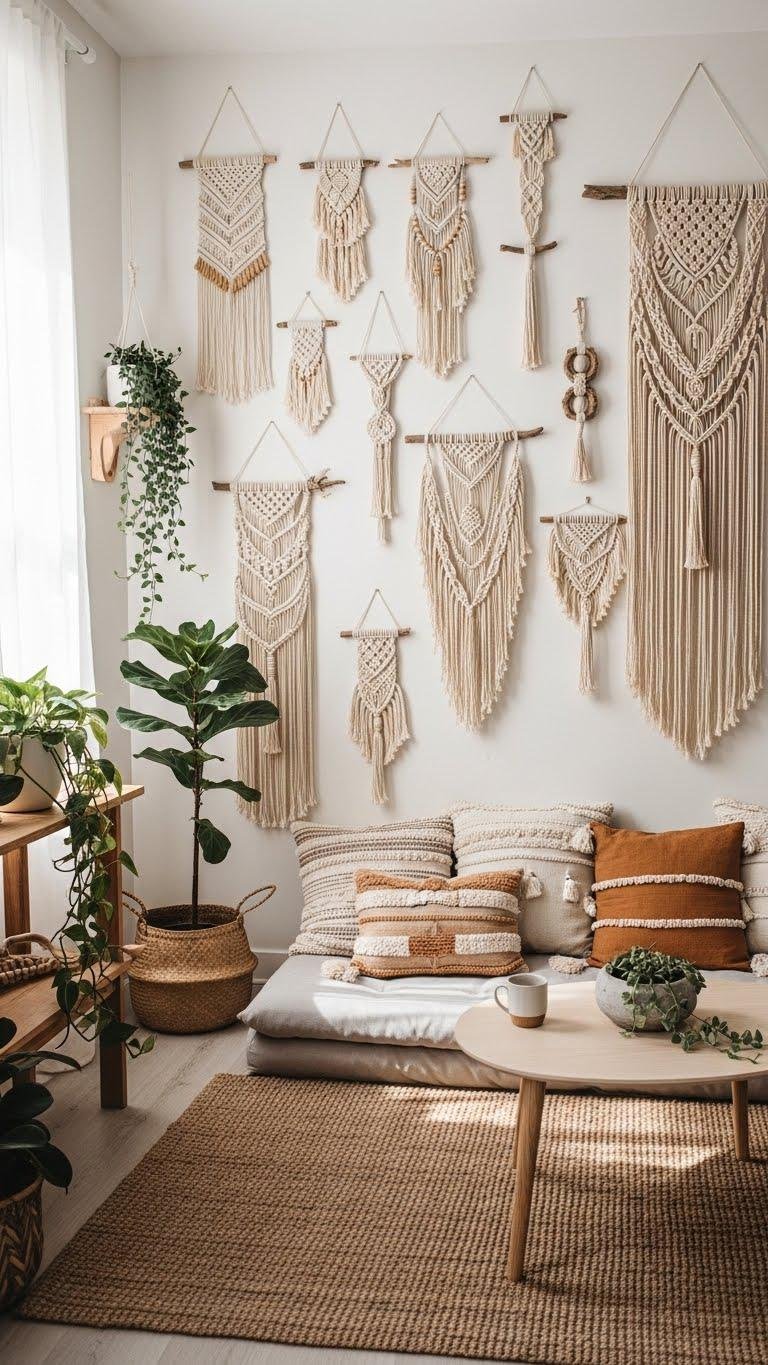 Often inspired by bohemian revival and modern minimalism alike, macramé wall hangings give your walls immediate warmth and sculptural presence.