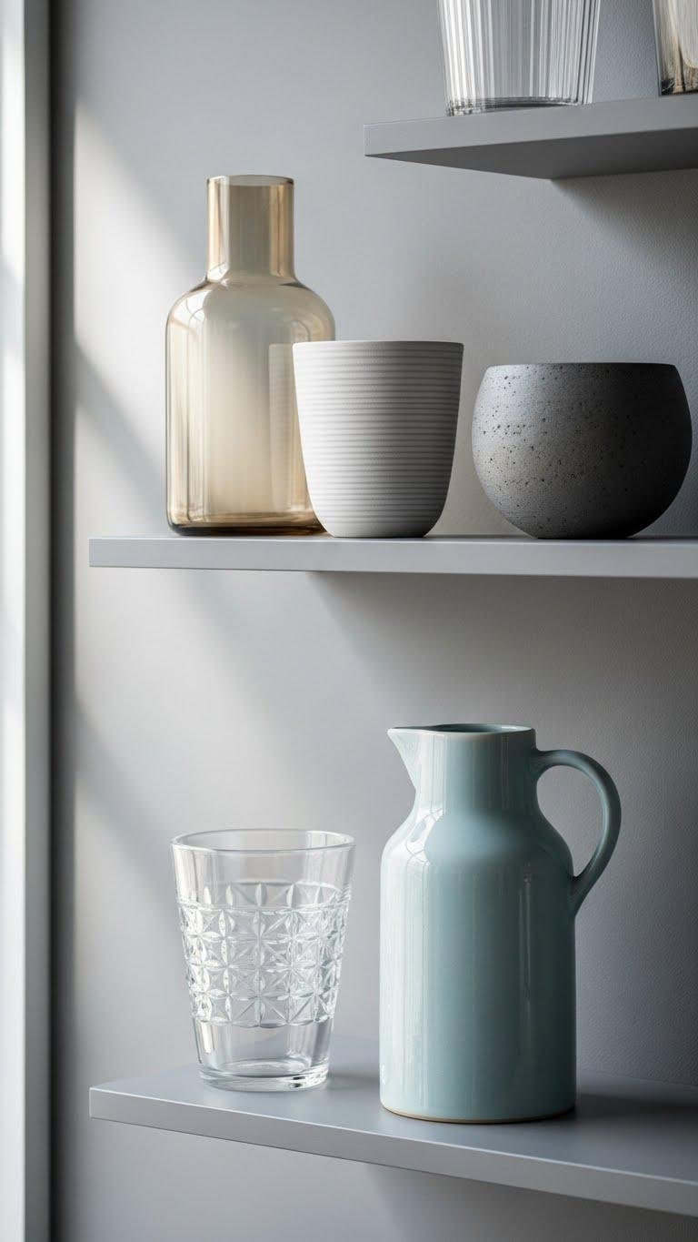 Pull together glass and ceramic pieces to build a collected, tactile story across shelves and surfaces. You’ll mix pressed glass with matte ceramics, arranging Ceramic vignettes that feel curated, not staged. Let varied scales, subtle color shifts, and negative space breathe; place a translucent vase beside a textured cup to catch light and invite touch. This approach feels modern, unfettered, and confidently personal.
