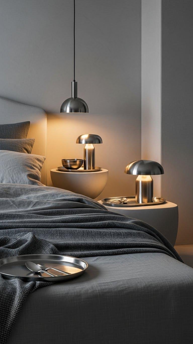 Move from the cool, mixed textures of frosty blue and neutrals into a pared-back gray scheme that feels both modern and soft. You’ll layer slate textiles—linen, wool, heavy cotton—for depth, pair matte silverware accents on bedside trays and lamps, and choose smooth plaster walls. Keep lines minimal, lighting warm, surfaces tactile. This lets you breathe, roam, and reset freely.
