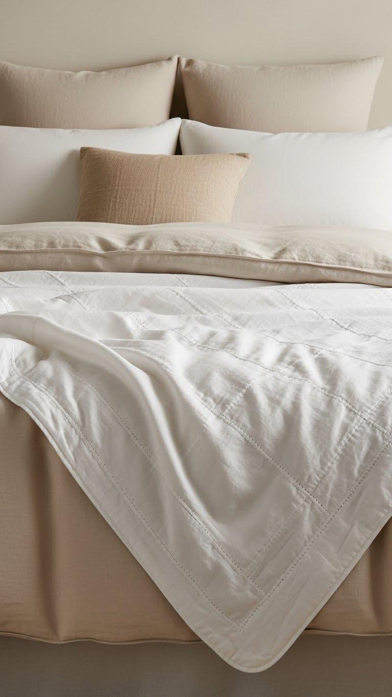 You’ll welcome linen textures that breathe, layers in muted whites, and a subtle stitch pattern that catches light.