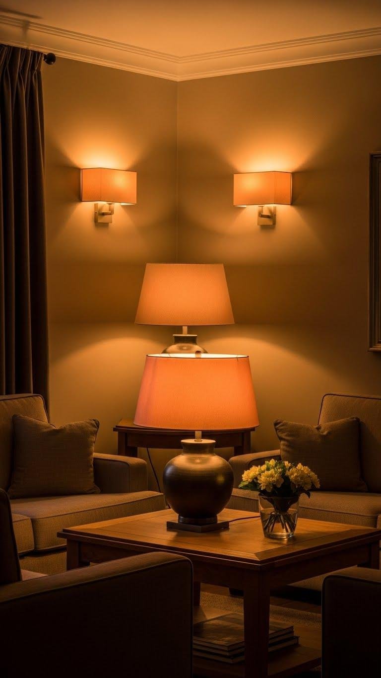 Warm, soft lighting transforms a room from merely decorated to deeply inviting, so choose bulbs and fixtures that cast a gentle, golden glow rather than harsh white light. You’ll favor soft amber tones, layered lamps, and shaded sconces that sculpt corners and encourage lingering.