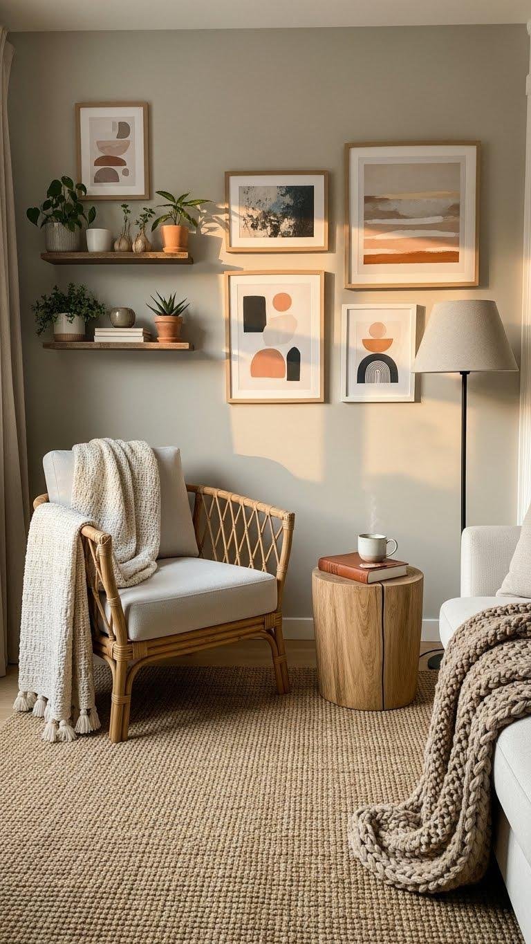 Start by choosing a warm neutral that sets the tone—think soft greiges, creamy taupes, or sun-kissed beiges—that lets textured materials like rattan, leather, and iron sing without competing.