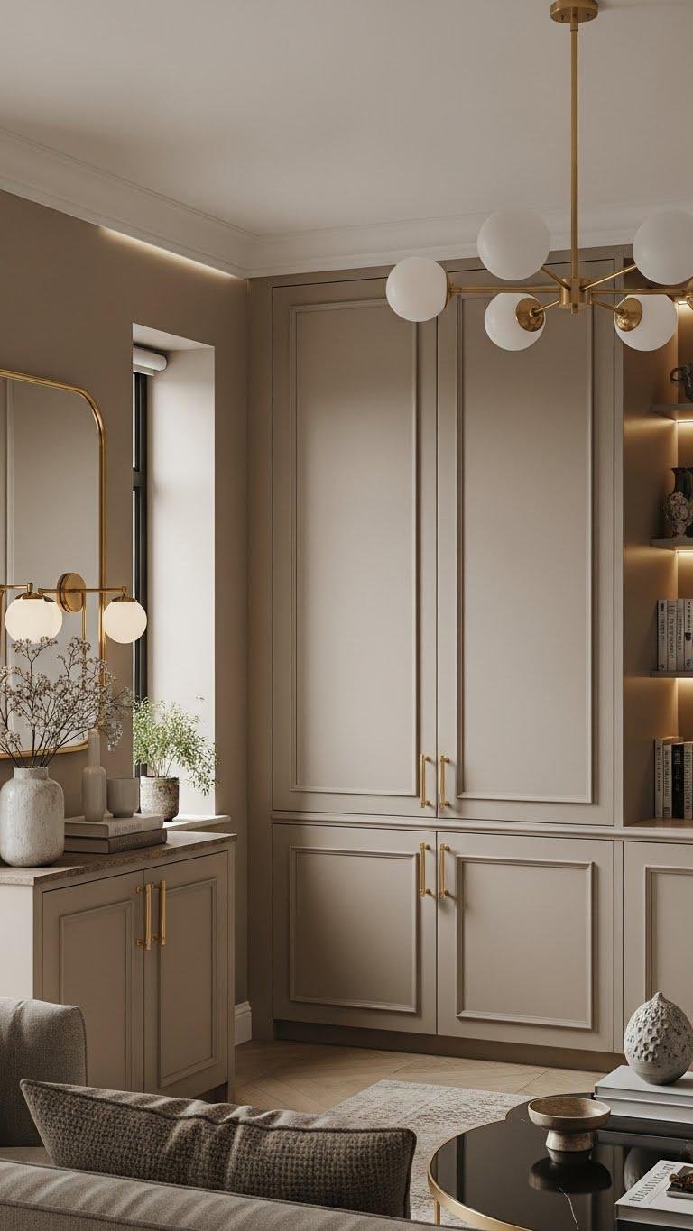 Once you’ve warmed a room with beige and taupe, bring in brass hardware to lift that softness with a refined, luminous edge. You’ll choose pieces with an aged patina to suggest history and freedom, balancing shine against restraint.