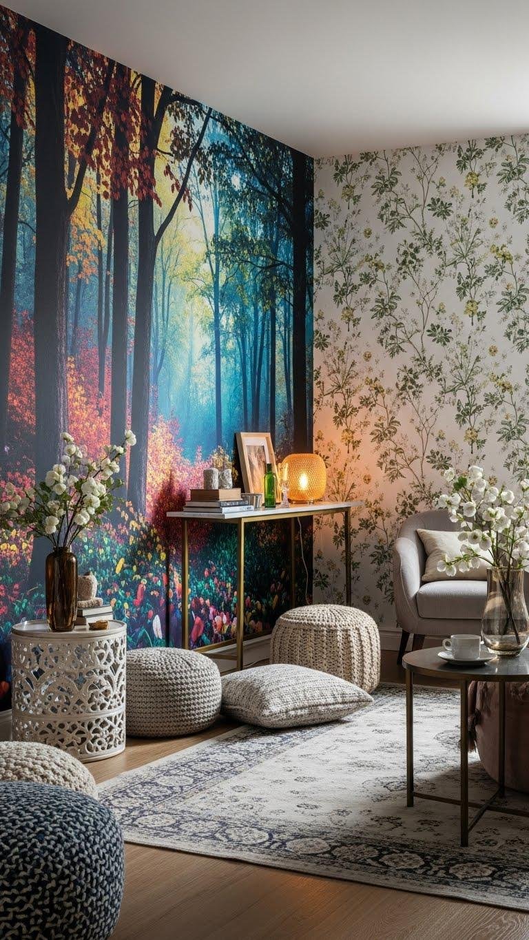 When you want to transform a room into a mood, immersive murals or wallpapers do the heavy lifting—wrapping walls in scale, color, and narrative so the space reads like a designed scene rather than a backdrop.