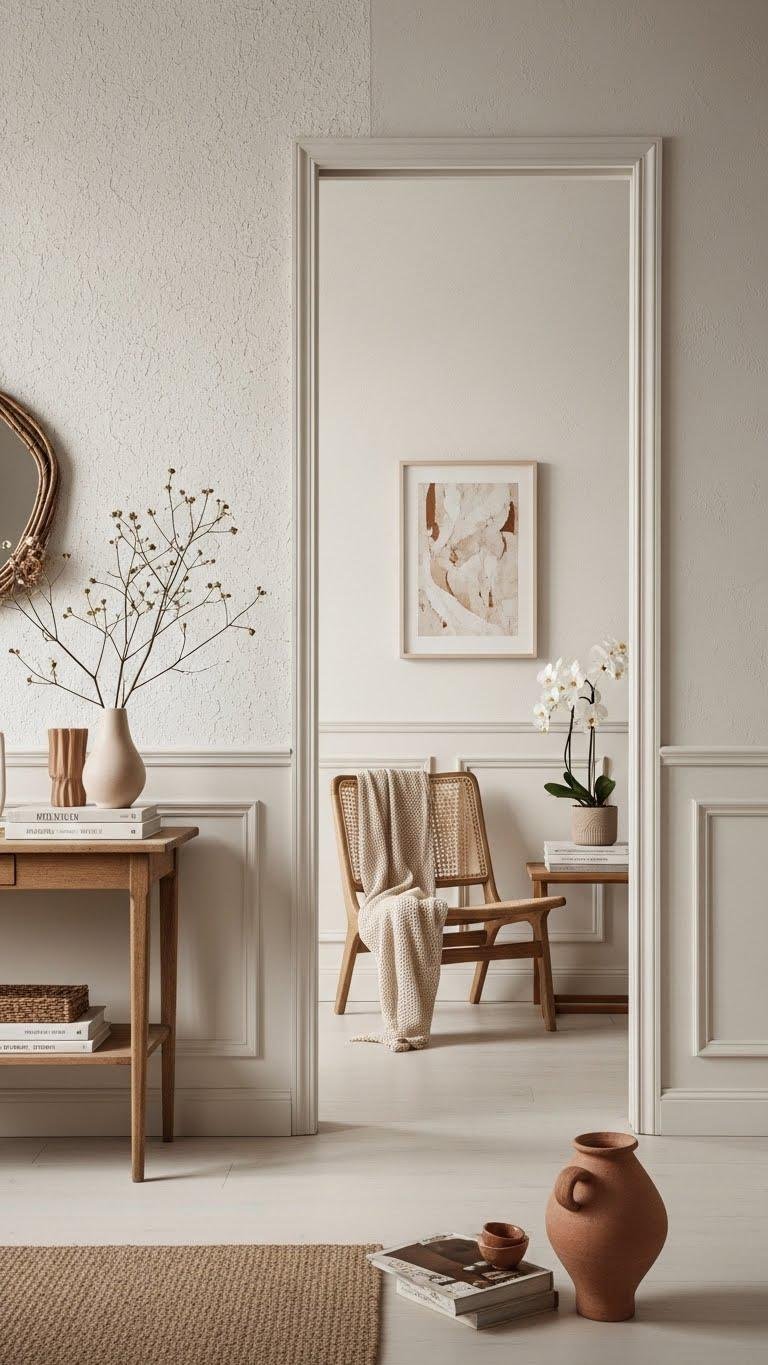 Start with a restrained, cohesive palette: pick three to four close neutral tones—cream, warm grey, soft taupe, and a deep clay—and use them consistently across walls, textiles, and major furnishings.