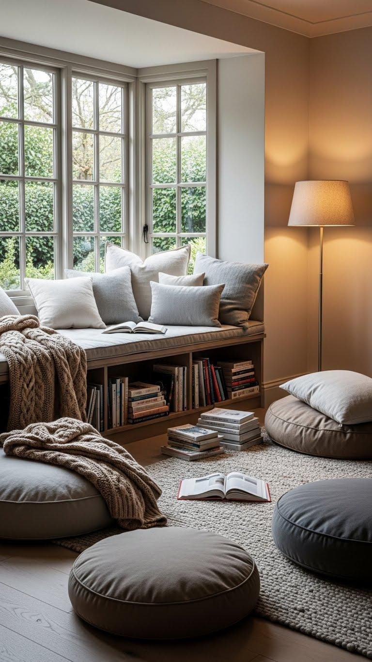 If you want a reading nook that feels like a quiet retreat, choose soft, layered lighting that flatters both text and texture. Position soft task lighting beside a window seat, add a low book ledge for current reads, and scatter floor cushions to invite slow afternoons.