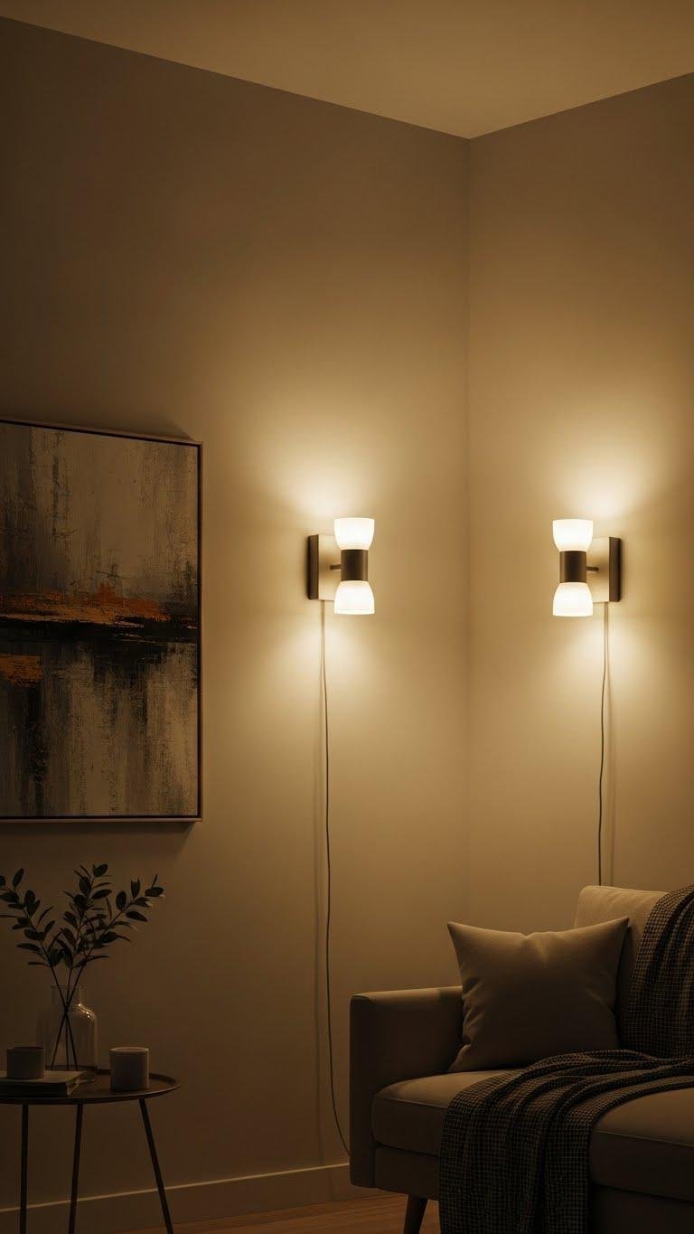You’ll mount fixtures using low voltage wiring for clean profiles and safer installation. Choose dimmable LED bulbs to sculpt mood and conserve energy. Place sconces near seating or art to provide layered, controlled light that supports quiet living and effortless freedom.