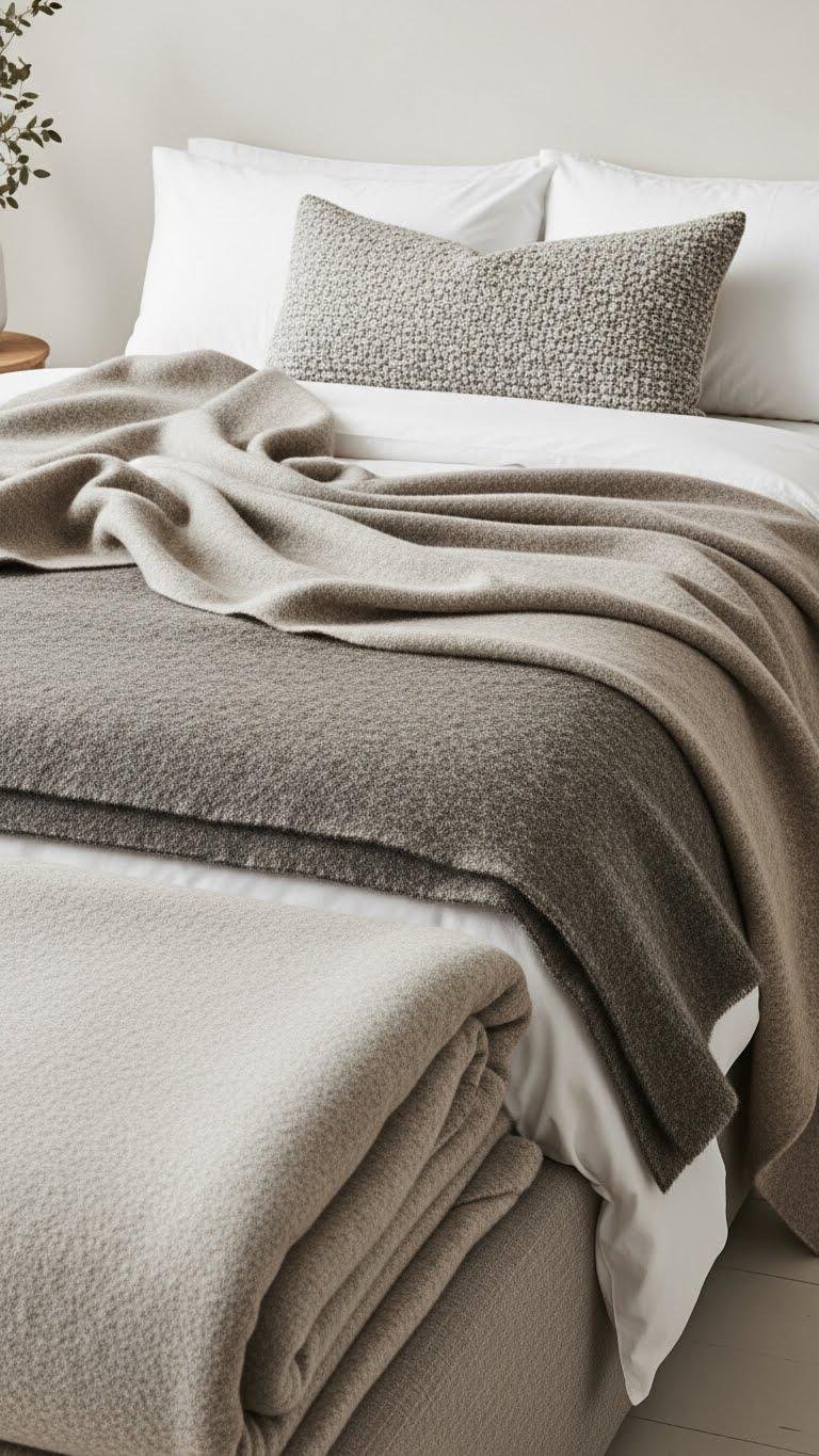 Drape a neutral throw, add a heavier wool blanket, then finish with crisp sheets and a single textured pillow. You get warmth, structure, and effortless style that honors simplicity.