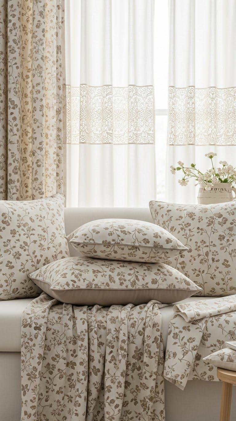 Soft Floral Textiles in Cream and Taupe